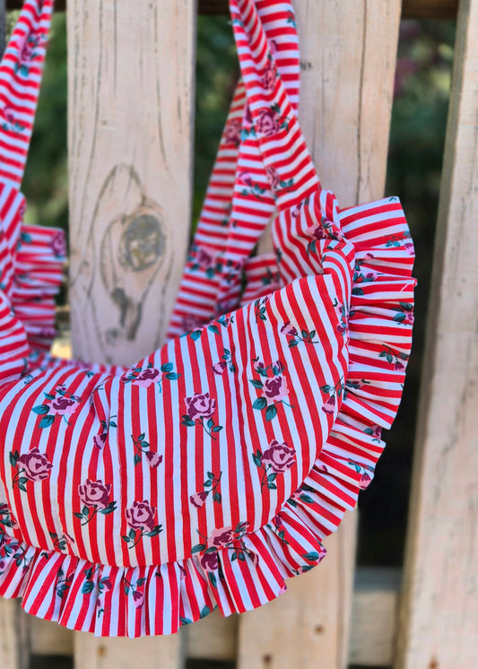 Cartera Hortensia rayas y rosas