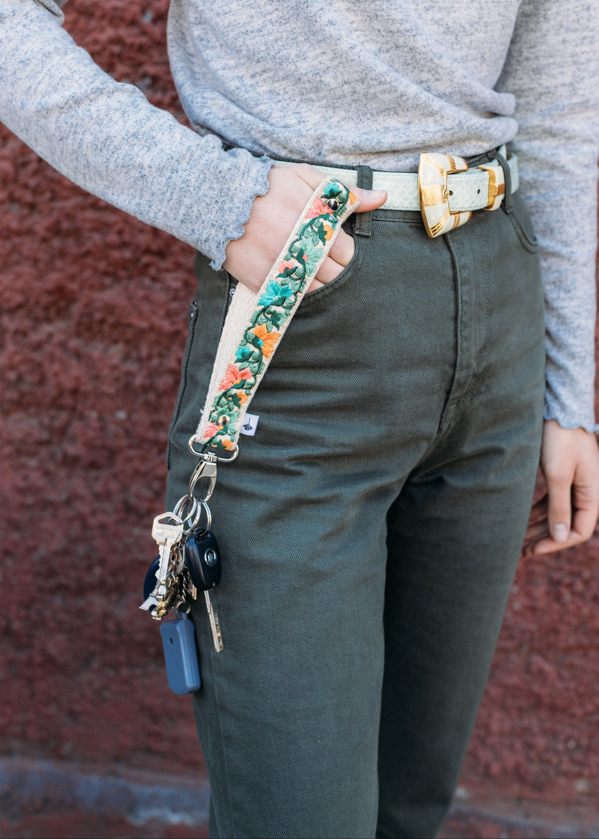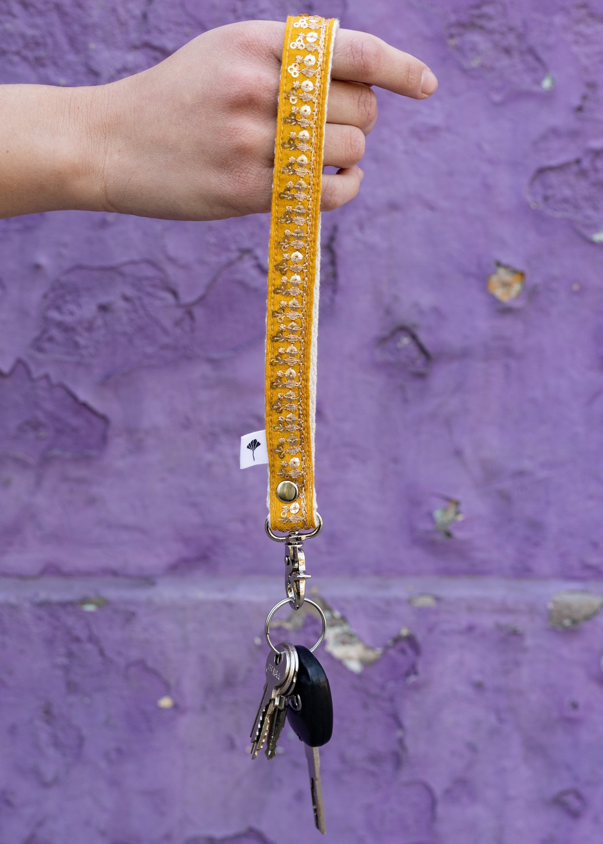 Llaveros con base 100% algodón y cinta a elección, de 22 cm de largo total (incluyendo broche). Ideal para llaves y celulares